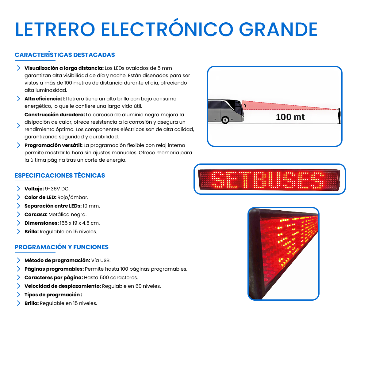 Visualización clara y profesional de rutas – Letrero electrónico LED rojo para la parte frontal del bus. Ideal para mostrar rutas o mensajes con excelente visibilidad y fácil programación.