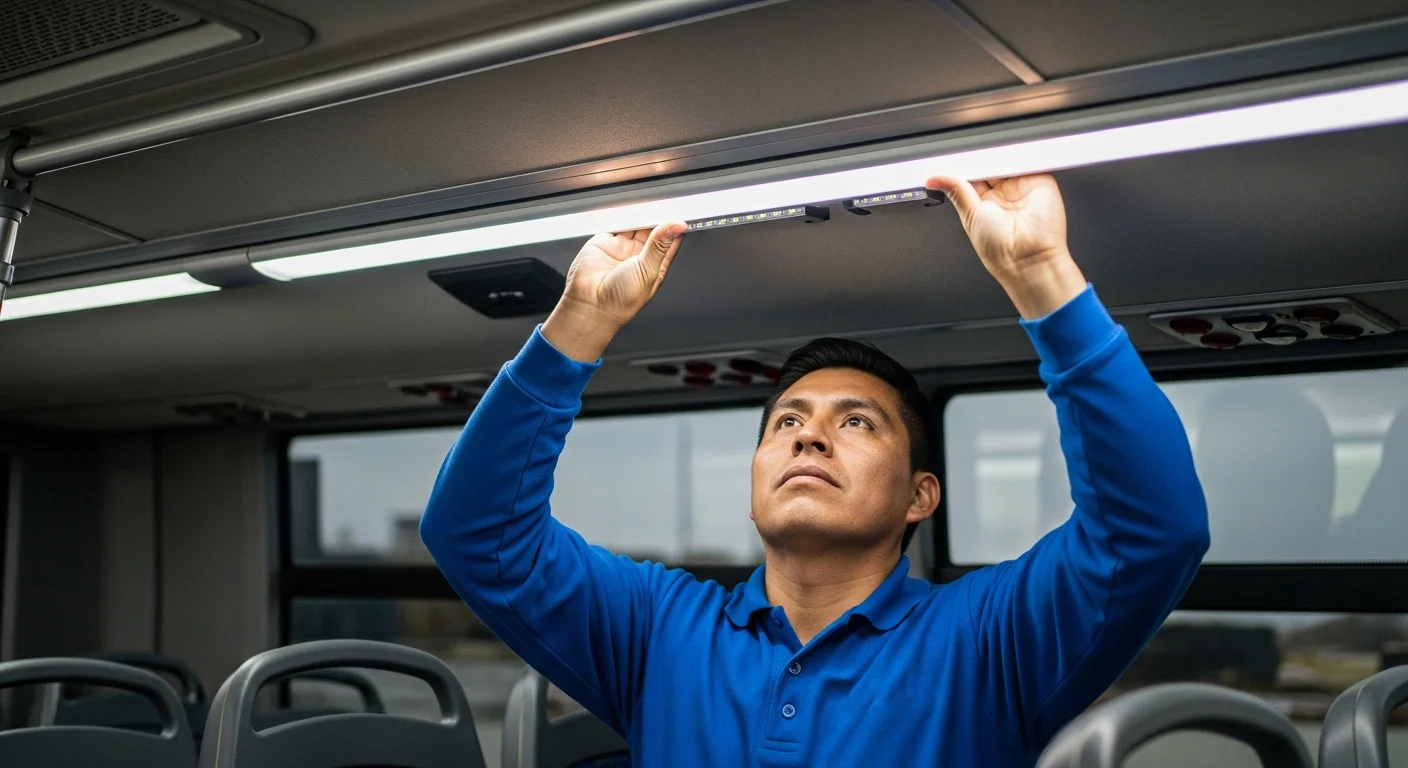 “Realizamos instalaciones profesionales de equipos electrónicos y de seguridad en buses: cámaras de vigilancia, monitores, velocímetros digitales, sistemas de audio, varillas LED, dicroicos, radios, conversores y más. Cada instalación se lleva a cabo por técnicos especializados, garantizando un trabajo limpio, ordenado y seguro para un óptimo desempeño en ruta.”